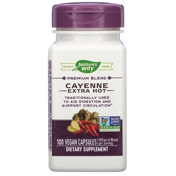 商品説明 Since 1969Premium BlendTraditionally Used to Aid Digestion and Support CirculationNon GMO Project Verified450 mg of Blend Per ServingDietary SupplementVeganTraditionally Used To Aid Digestion And Support CirculationAt Nature’s Way®, we believe nature knows best. That’s why our mission is to seek out the best herbs the earth has to give. We will go to any continent or country to find where herbs grow best, so we can bring you the purest botanicals possible. It’s the way we deliver uncompromising quality and the way to help you live healthier. It’s not just our way. It’s Nature’s Way.™ ご使用の目安 食事と一緒に1錠お召し上がりください。1日に3錠以上お召し上がりにならないで下さい。 成分その他 Plant-derived capsule (hypromellose).Gluten free. No sugar, salt, yeast, wheat, corn, soy, dairy products, or artificial colors, flavors or preservatives. 警告 If you suffer from heartburn, hiatal hernia, gastritis, or peptic ulcer disease, consult a healthcare professional before use. Excessive doses may cause GI irritation in sensitive individuals. If you are pregnant, nursing, or taking any medications, consult a healthcare professional before use.Keep out of reach of children. Safety sealed with printed inner seal. Do not use if seal is broken or missing. 免責事項 iHerbでは、製品情報や画像は最新のものを提供するように努めてはおりますが、メーカーでの急な変更の際に、サイトの更新に間に合わない場合があります。そのため、違うパッケージの商品が送られる場合がございますのでご了承下さい。当店の商品の新鮮さは保証致します。iHerbのサイト上に提示されている情報よりも、実際の商品にあるラベル、警告、使用方法を優先させてください。 メーカーのウェブサイトをご覧ください 栄養補助剤成分表示Serving Size: 1 Capsule Amount Per Serving% Daily ValueProprietary BlendCayenne pepper (fruit), Ginger (root), Hawthorn (berry)450 mg****Daily Value (DV) not established