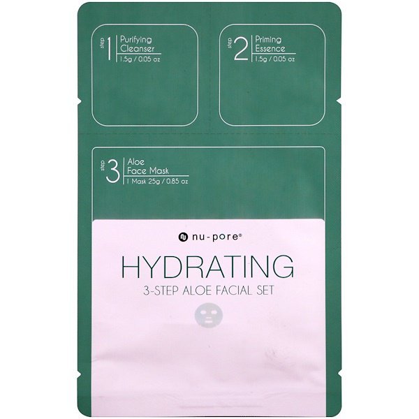 ステップ1: ピュリファイングクレンザー ステップ2: プライミングエッセンス ステップ3: アロエフェイスマスクNu-poreのナリッシング3ステップ・アロエフェイシャルセットは、スパ体験を快適なご自宅にお届けします。