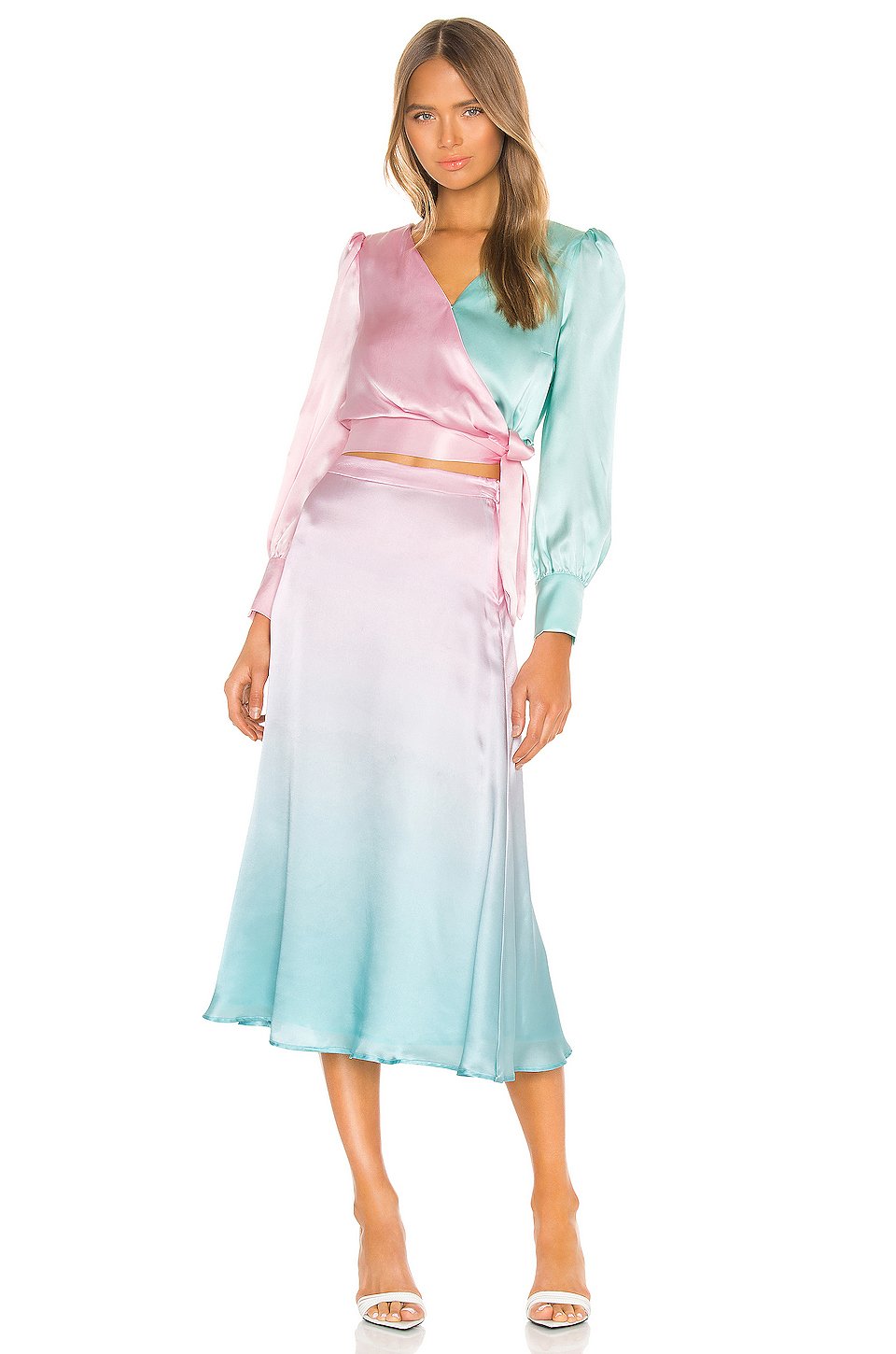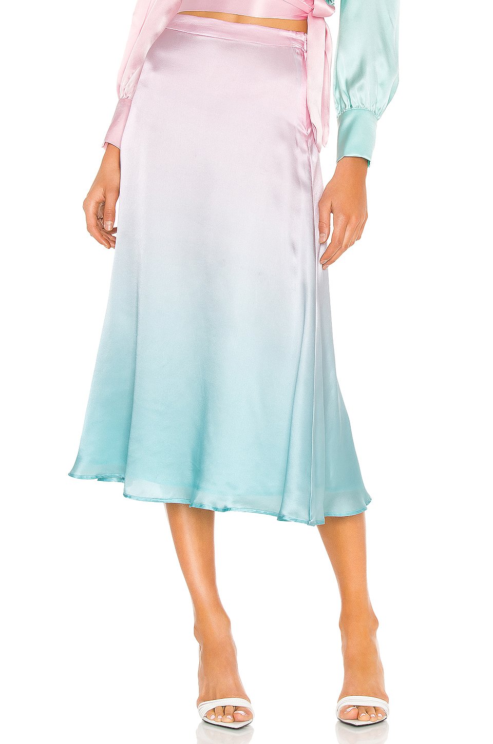 Dress to impress with the Penelope Skirt by Olivia Rubin. Featuring beautiful ombre hues on a classic silhouette, its the perfect mix of sophistication and modernity to make a statement wherever you go.本体:100%シルク裏地:100%ポリエステルドライクリーニングのみ裏地付きサイドに隠れたジッパー留め具スカートの長さは約84 cm輸入品