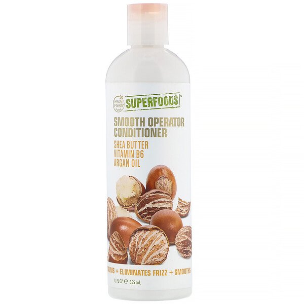 Calms + Eliminates Frizz + SmoothsVeganColor SafeSustainable Sulfate Free Phthalate Free Superfoods for Frizz Free Hair Tame frizzy and unruly hair with confidence. Add a nutrient-rich Superfood Ingredient, VItamin Supplement and Strengthening Protein to your haircare regimen. Our Smooth Operator formula blends Shea Butter, Vitamin B6 and Argan Oil to moisturize, fortify and soften. SuperFoods delivers all of the essentials for calming frustrated hair and creating a smooth shine-turn on the charm.