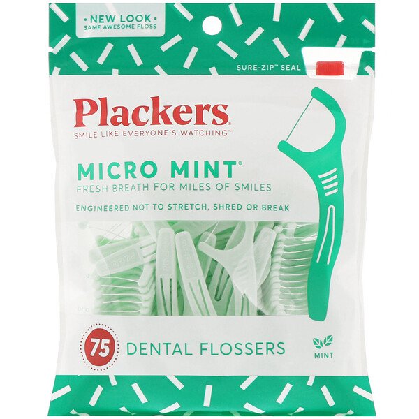 Plackers, ミクロミント(Micro Mint)、デンタルフロス、ミント75本