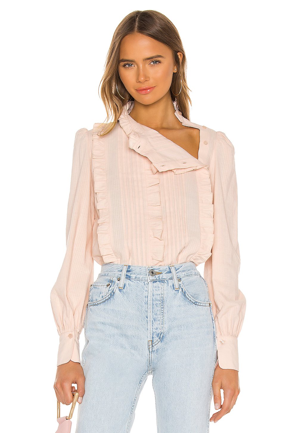 Poise and regal is the way to be when shopping with See by Chloe. This textured poplin blouse embodies classic femininity on a soft pink silhouette against a ruffled trim. With every romantic detail on such a classic style, this look really can’t go wrong.100% コットンフロントにボタン留め具ラッフルディテールボタン付カフ輸入品