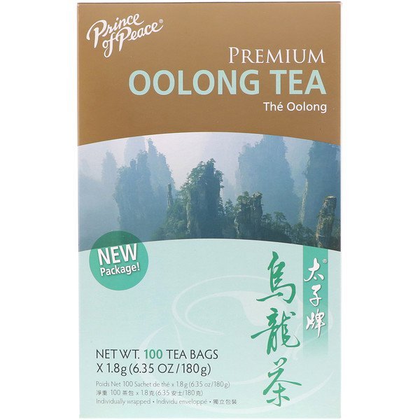 Individually WrappedPrince of Peace Premium Oolong TeaPrince of Peace is the name you can trust. Our company has been providing quality tea products since 1983. Instead of expensive advertising campaigns, we’ve chosen to pass on the savings to you, and let you tell others of our great products.Oolong Tea (also known as Wu-Long Tea) is from the Wuyi District of Fujian China – also known for its famous Rock Tea. Oolong is semi-fermented, combining the qualities of black (rich taste) and green (antioxidants benefits) teas. Our Premium Oolong Tea has a woody aromatic scent and a full bodied flavor. A typical cup of oolong tea has about 30-40 mg of caffeine, and a cup of coffee ranges from 100-180 mg.