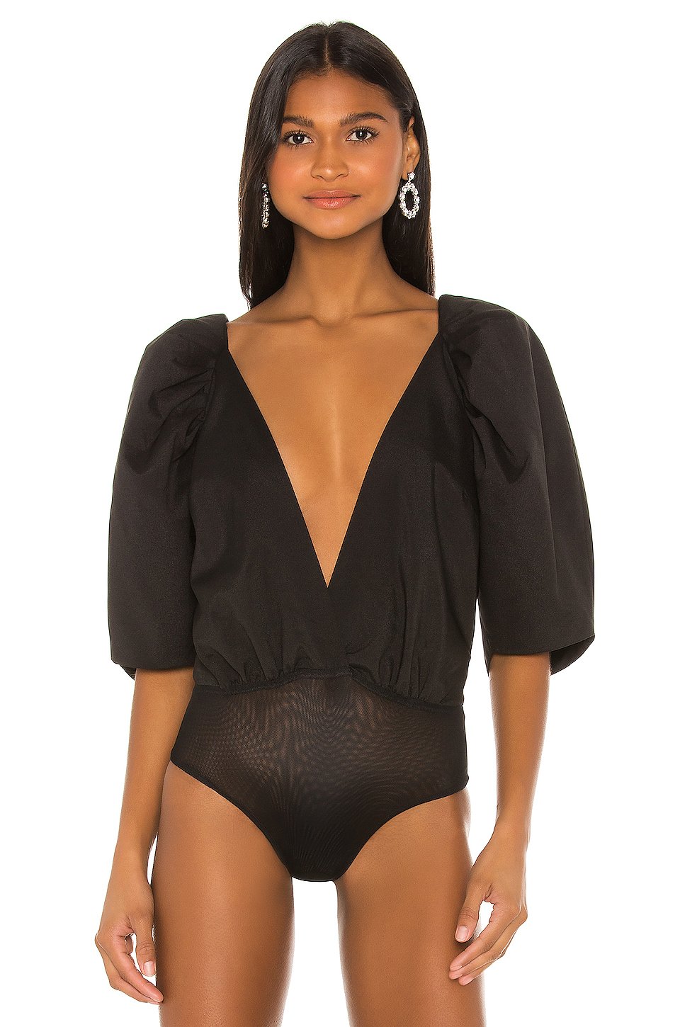 ポリエステル混紡ボトムスナップボタンクロージャーPuff sleeveオープンバック
