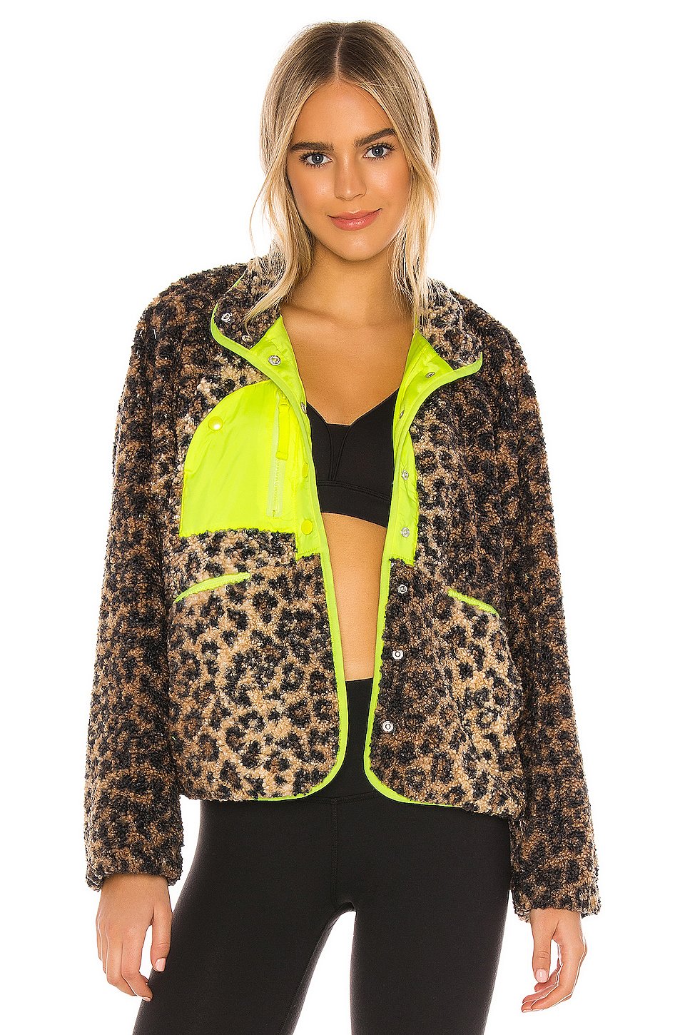 本体: 100% ポリエステル裏地: 100% ポリエステル, 12% エラスタンフェイクファーフロントスナップボタン留め具ジッパー付きポケット色はネオンの色調であることにご注意ください輸入品