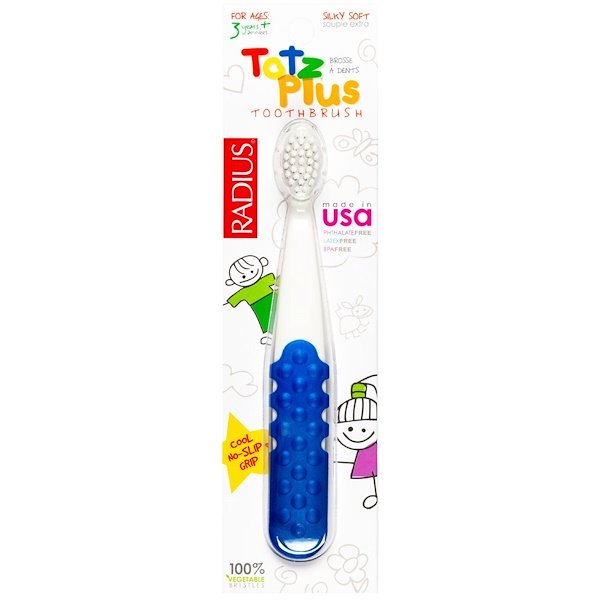 早いうちに、正しく始めましょう 新登場の楽しくてすべらないゴムグリップエクステンダー プレミアムRADIUS 毛 育ち盛りのちびっ子のための先細ハンドル RADIUS のなめらかな楕円ヘッド 圧力の少ないブラッシング BPA, フタル酸エステル, ラテックスすべて不使用。