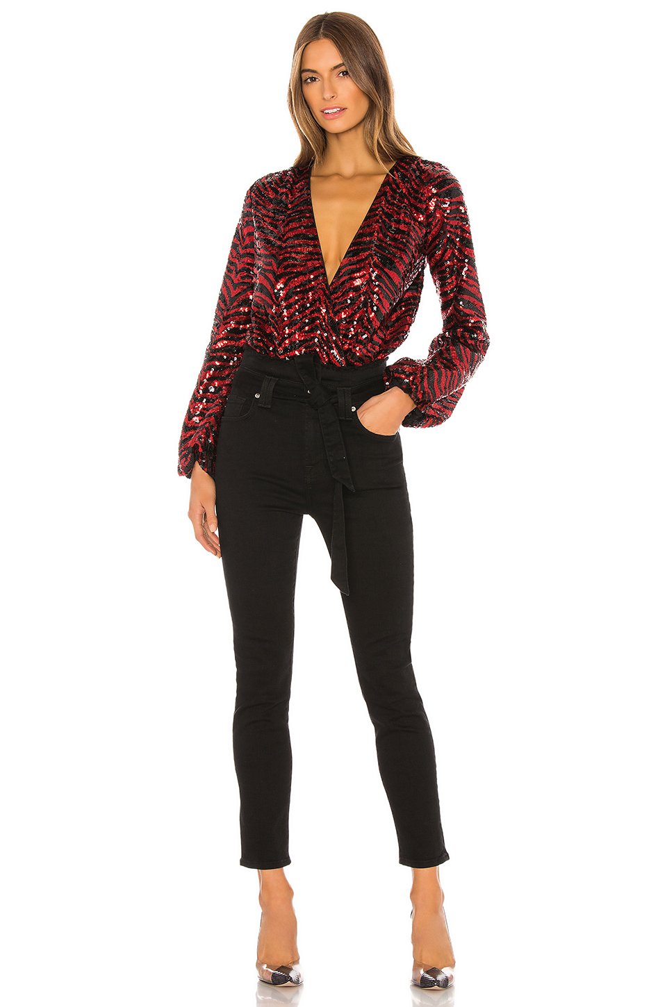 トップ: 100% ポリエステルボトム: 86% ナイロン, 14% エラスタン裏地: 87% ナイロン, 13% エラスタン低い液温で手洗いボトムスナップボタンクロージャーサープリスのフロントBalloon sleeveSequin embellishments allover輸入品