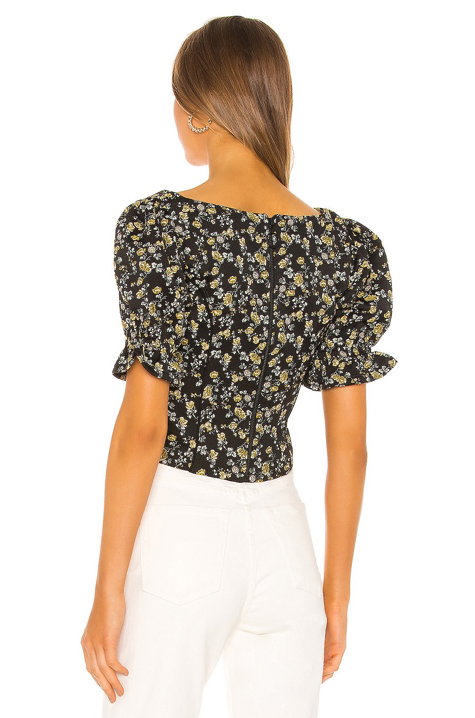 本体: 100% ポリエステル, 32% コットン, 2% エラスタンバックジップクロージャーPuff sleeveジャカードヨーク生地トルコ製
