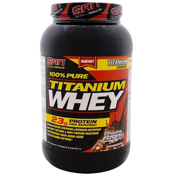 SAN Nutrition, 100%ピュアチタニウムホエイ、チョコレートロッキーロード、32オンス (907.2 g)