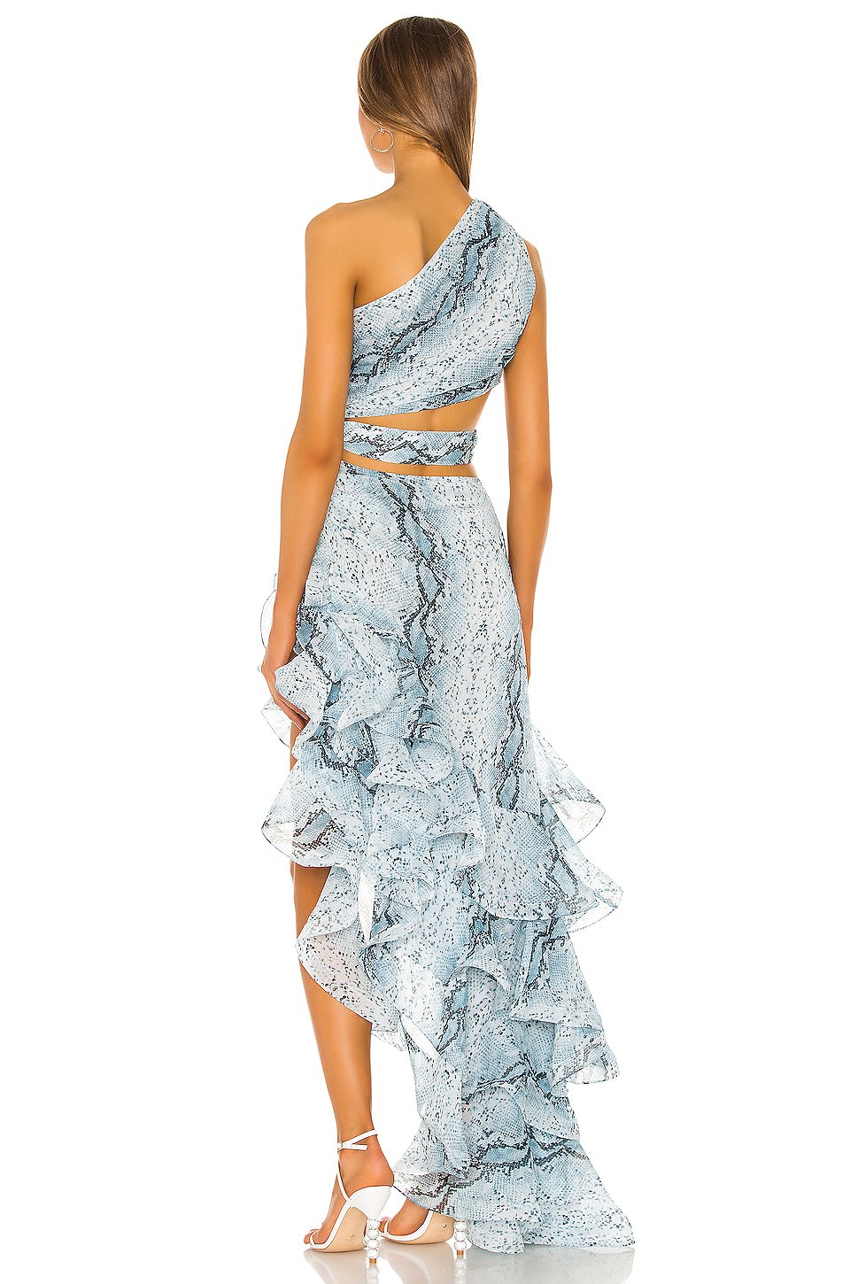 モデル着用サイズ XS.ショルダーシームから一番短いヘムの長さは約86 cm、一番長いヘムまでの長さは約170 cm
