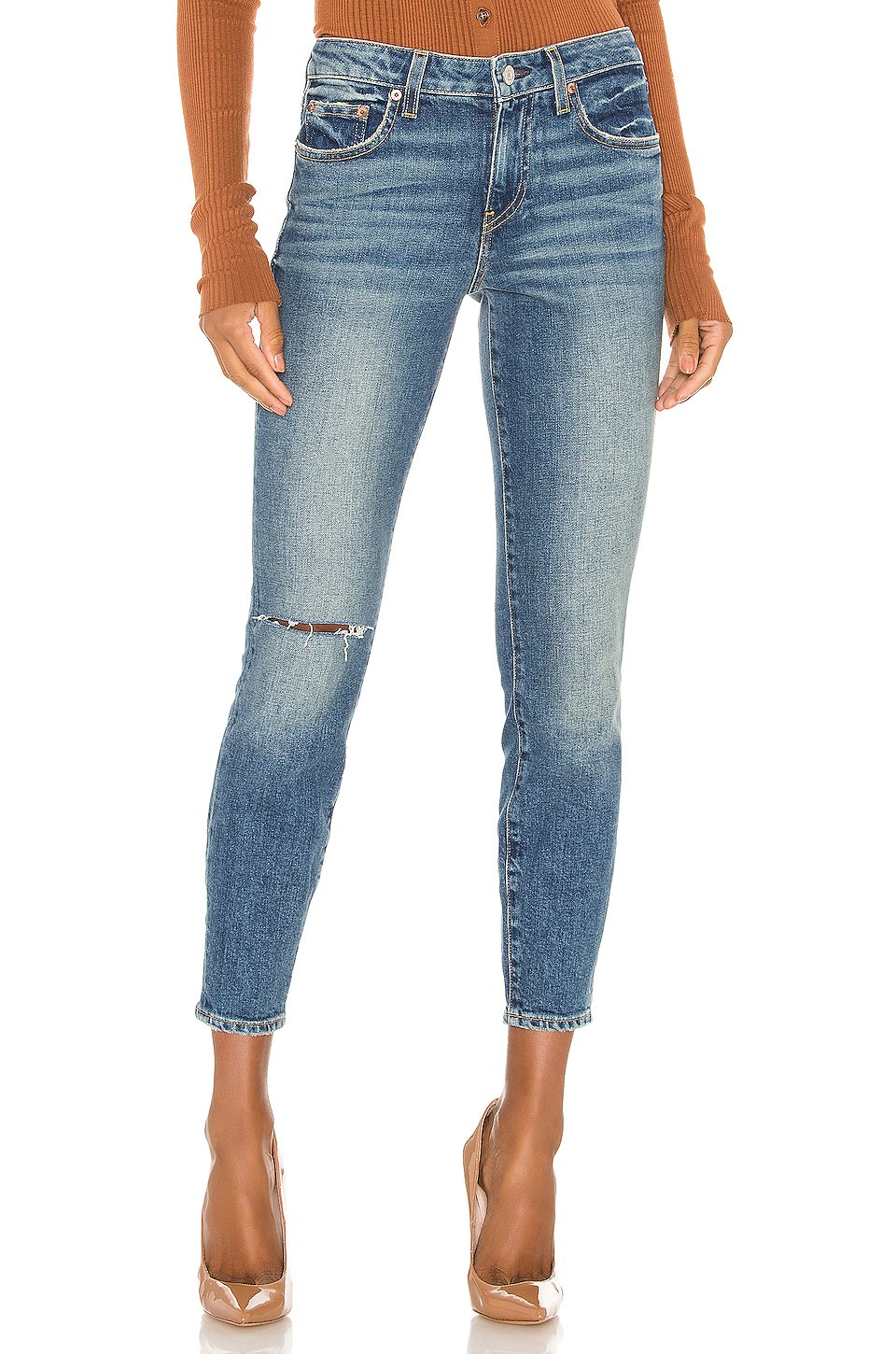 98% コットン, 2% エラスタン控えめなフェードとディストロイドディテールジッパーにボタン留めクロージャー5-ポケットデザイン膝周り30 cm、裾周り25 cmアメリカ製