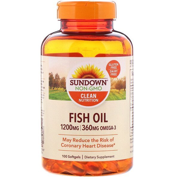 Sundown Naturals, フィッシュオイル、1,200mg、ソフトジェル100粒