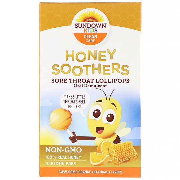 Sundown Naturals Kids, ハニースーザー、ソアスロートロリポップ、オーサムオレンジ、10個