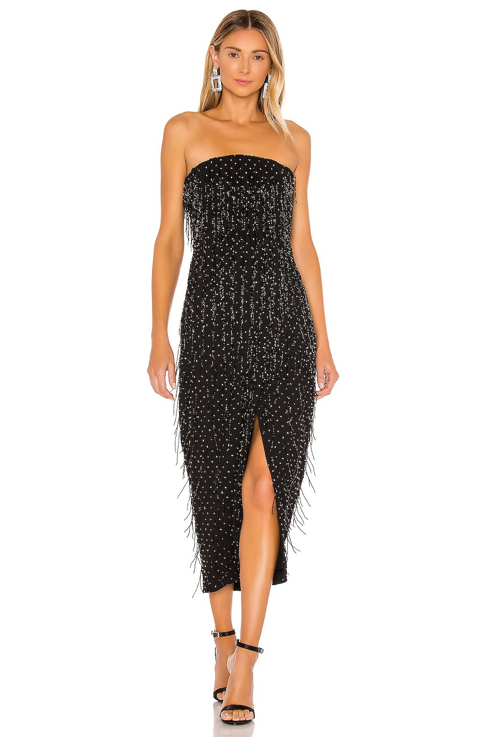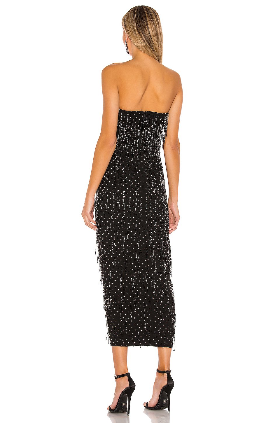 セルフ 1: 100% ポリエステルセルフ 2: 97% コットン, 3% スパンデックス裏地: 100% ポリエステル, 10% スパンデックスドライクリーニングのみ裏地付き隠れたバックジッパークロージャーボーン付きボディスCrystal and beaded fringe embellishments throughoutネックラインからヘムまでの長さは約112 cm輸入品