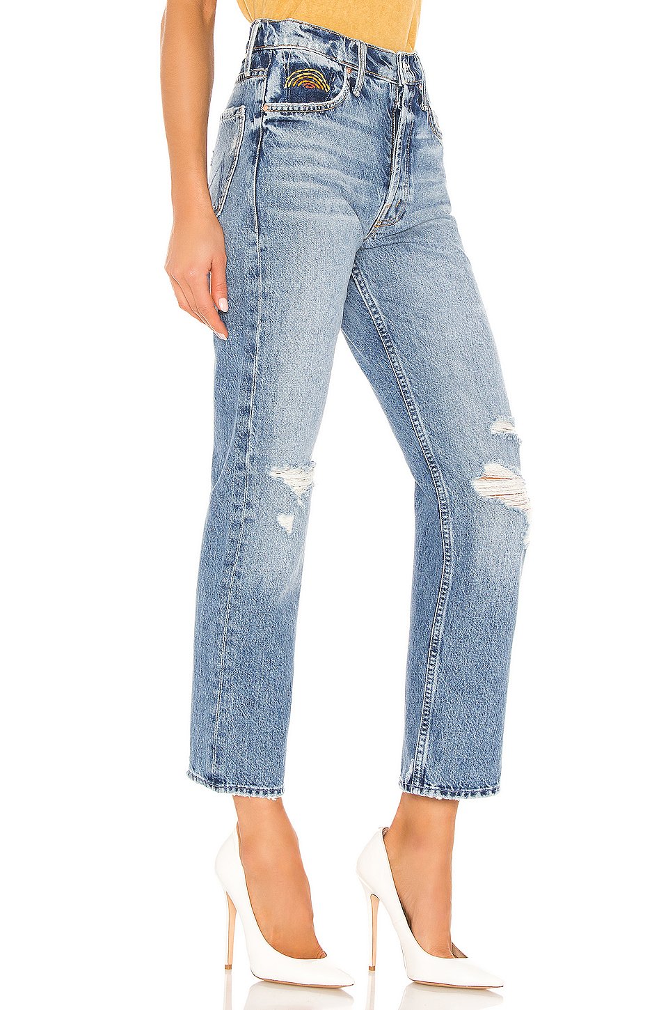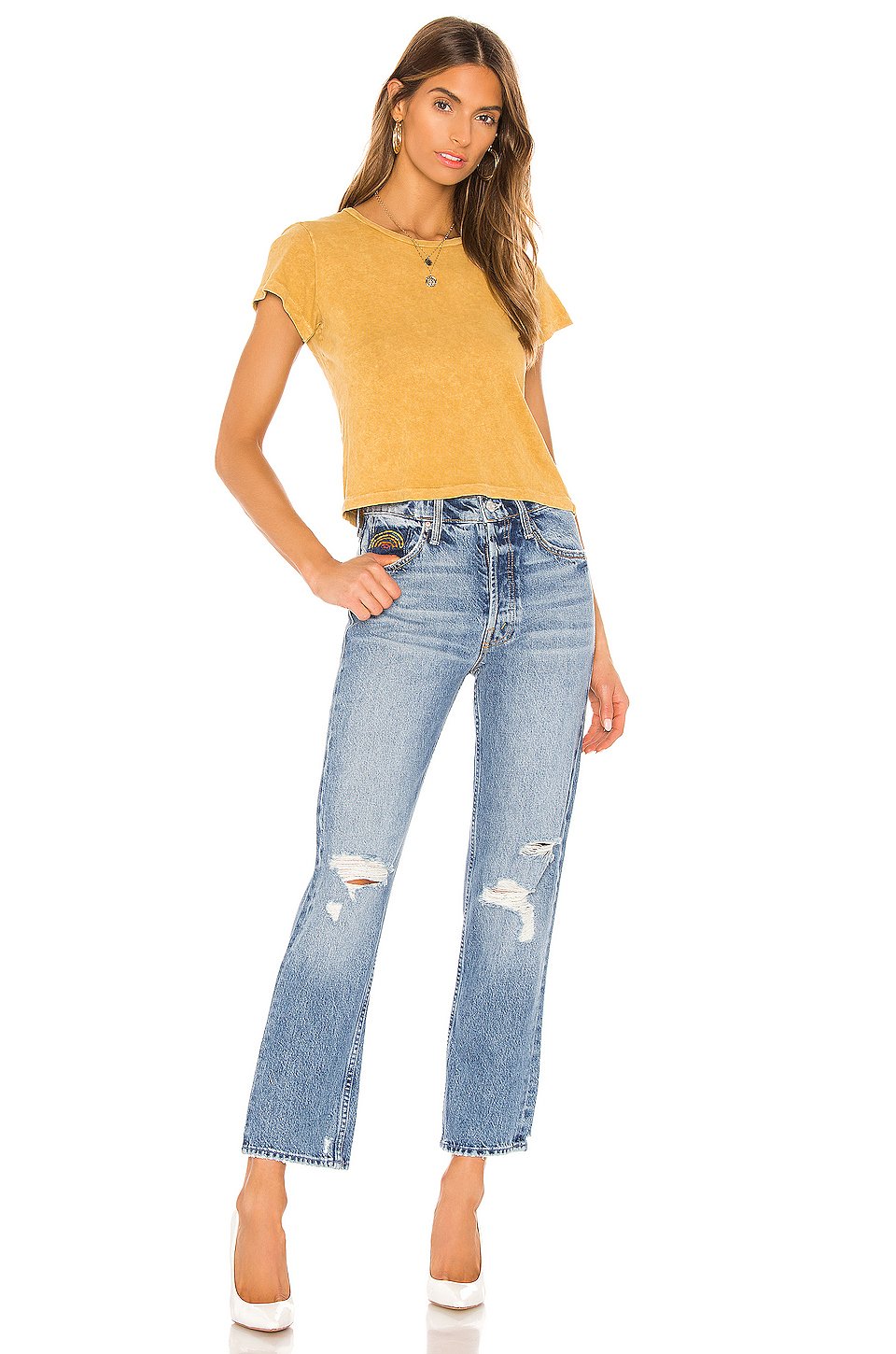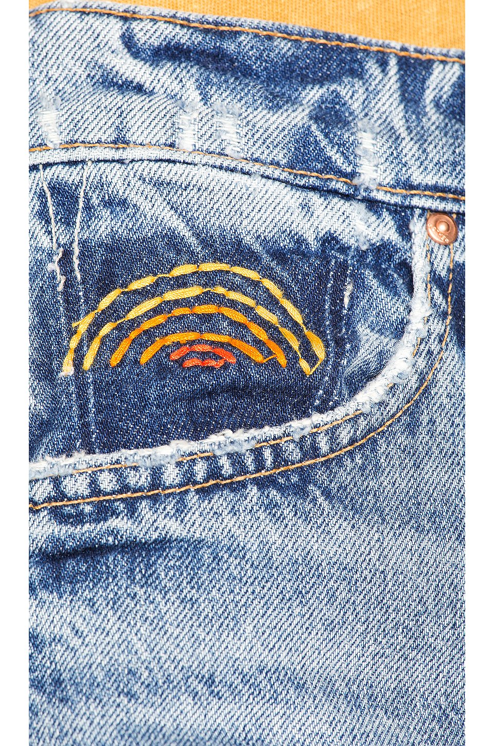 100% コットンボタンフライ4-ポケットスタイリング控えめなフェード加工とディストレスディテール膝周り36 cm、裾周り36 cmアメリカ製