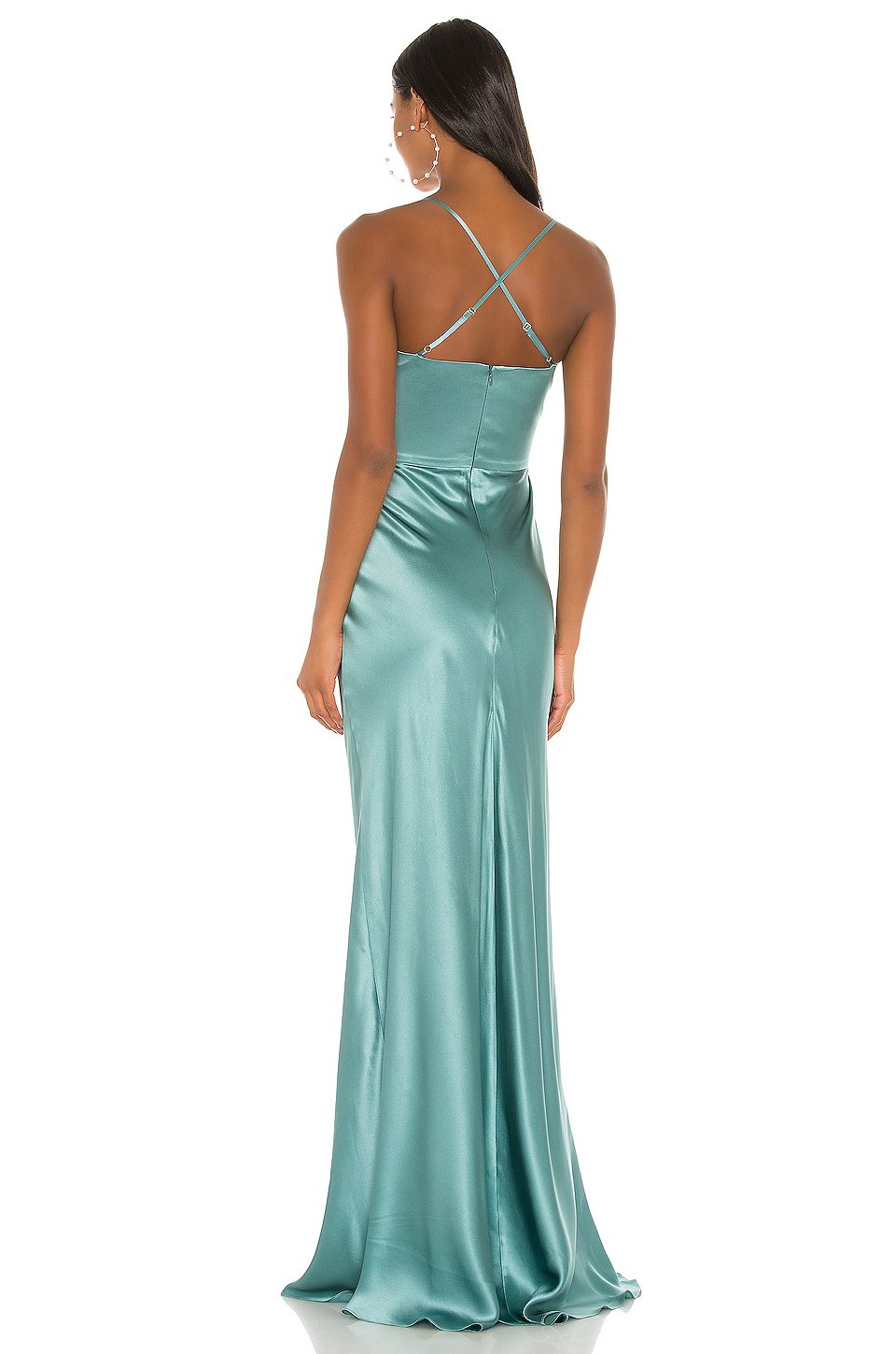 100% シルクドライクリーニングのみ裏地付き隠れたバックジッパークロージャー調整可能なショルダーストラップFront twist and cut-out detailアメリカ製