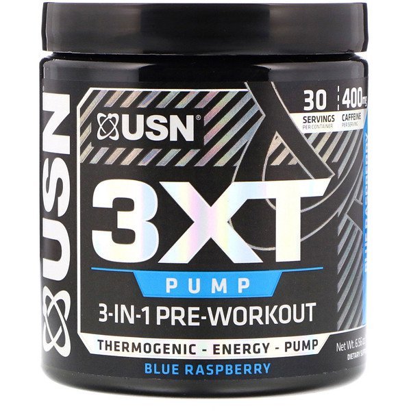 USN, 3XT- パンプ、3-イン-1 プレワークアウト、ブルーラズベリー、6.56オンス (186 g)