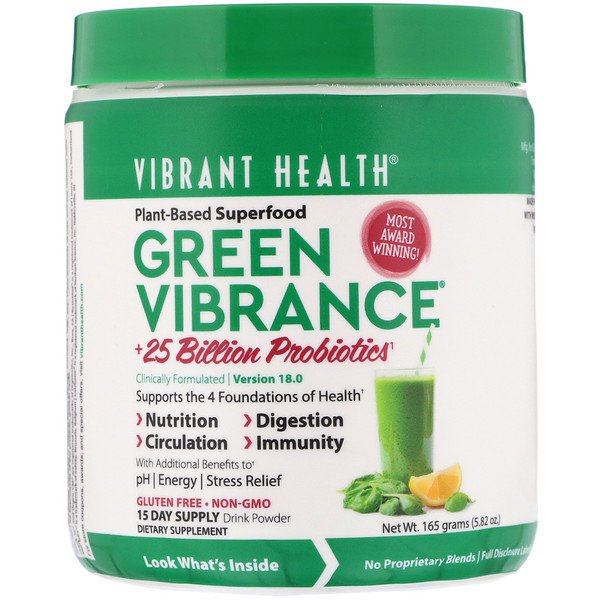 Truth, Trust, Transparency Full Disclosure Label No Proprietary Blends Plant-Based Superfood Most Award Winning! 25 Billion Probiotics* Clinically Formulated Gluten Free Non-GMO 15 Day Supply Drink Powder Dietary SupplementSupporting the 4 Foundations of Health: Nutrition Digestion Circulation ImmunityWith Additional Benefits To: pH Energy Stress Relief*Per serving at time of manufacturing.