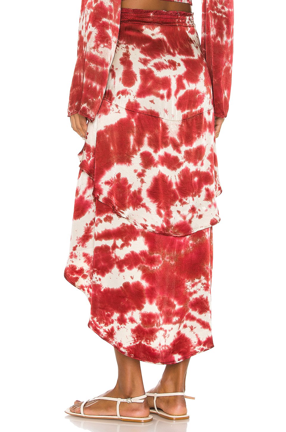 100% ビスコースドライクリーニングのみ裏地無しSmocked waistbandTiered satin fabricウエストから裾の一番短い箇所までの長さは約41 cm、裾の一番長い箇所までの長さは約94 cmアメリカ製