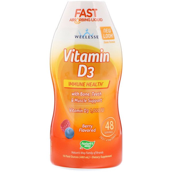 Nature’s Way, ビタミン D3, ナチュラルな木苺のフレーバー 1000 IU, 16 オンス (480 ml)