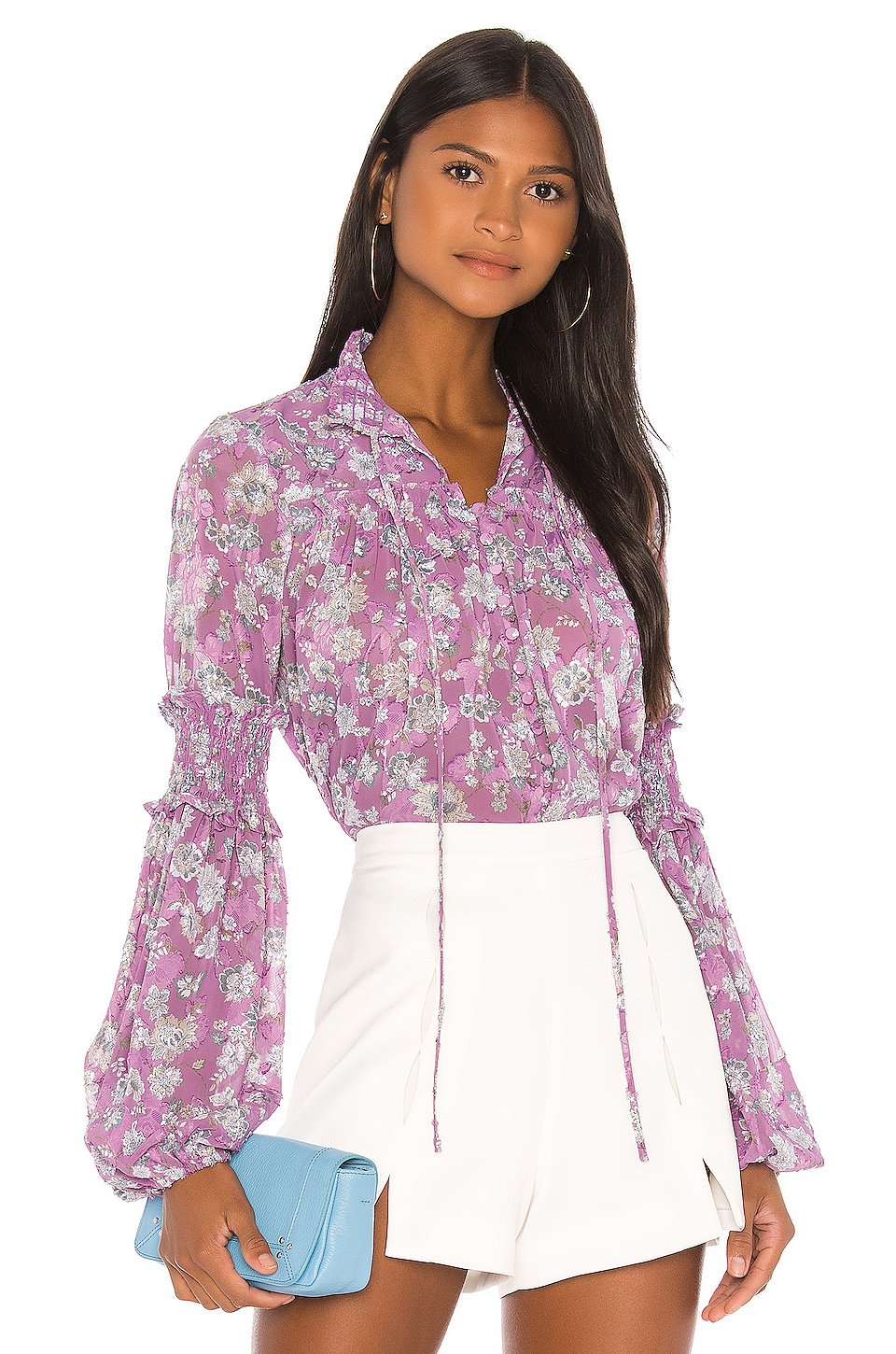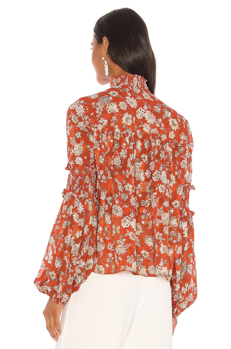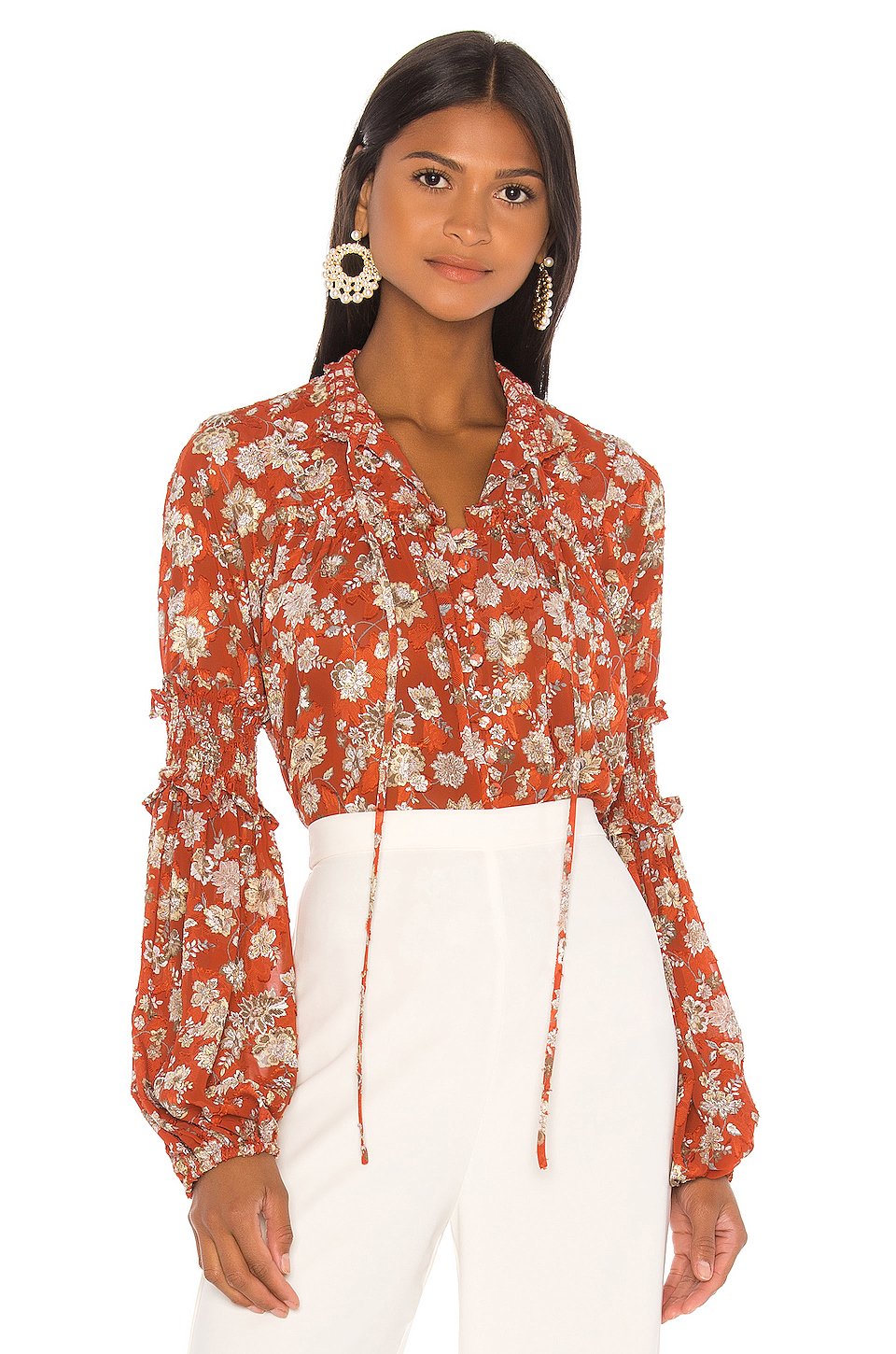 Pretty with a pop. The Alexis Zaria top pairs fresh florals with a burst of color for a brilliantly sweet look.100% ポリエステルドライクリーニングのみ前ボタンループ留め具Smocked neckline with tie closureSmocked sleeves with elastic cuffsGeorgette fabric with fil coupe detail輸入品